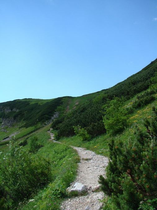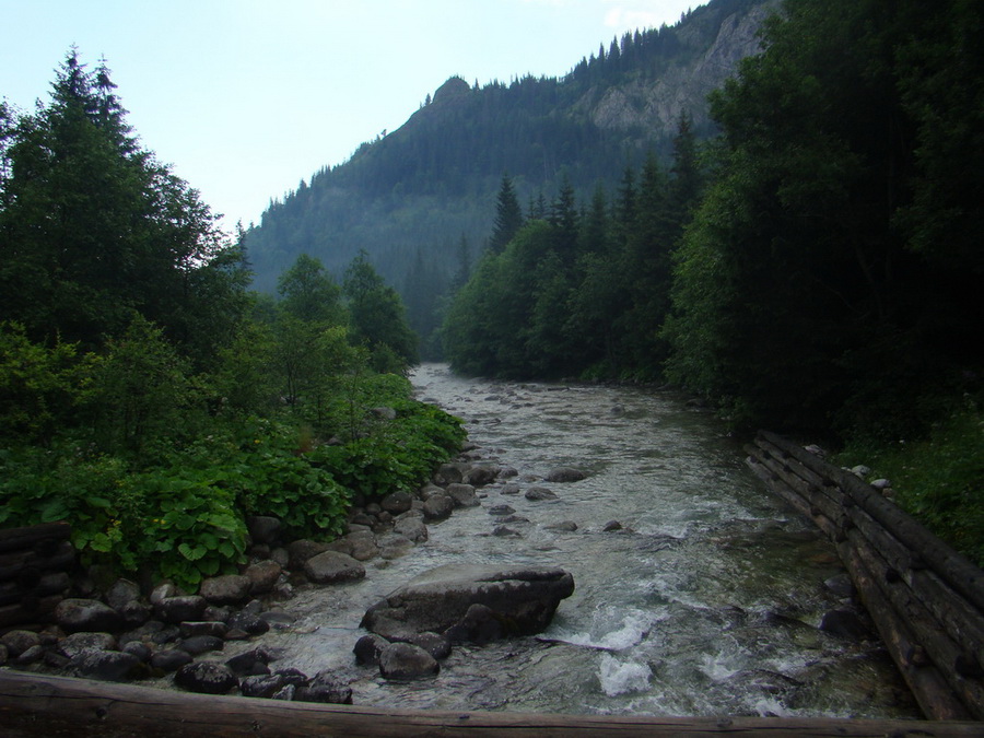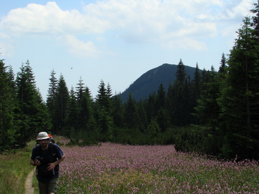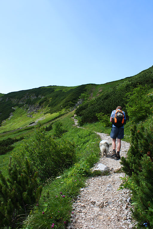 Ako už v poslednej dobe bývalo zvykom, vyrazili sme z Lendaku vlakom ráno o 6.22. V Poprade sme čakali na prípoj do Tatranskej kotliny vyše pol hodiny. Vystúpili sme na zastávke, upravili výstroj a vyrazili. Na prvé rázcestie sme šli skratkou, ktorú nám nedávno ukázal strážca parkoviska. Zrýchleným krokom sme minuli skupinu obéznejších zahraničných turistov smerujúcich ku Belianskej jaskyni, odbočili na skratku a vychodeným chodníčkom pokračovali až k rázcestiu Šumivý prameň. Od rázcestia sa postupuje viac-menej otvoreným priestranstvom a na prudkom slnku je to dosť zaberačka. Prekonali sme prevýšenie a vstúpili do lesa. Tu sa už prevýšenie zmierňuje a chladnejšia klíma spolu s výhľadmi na Lomńický a Kežmarský štít nám spríjemňuje cestu. V čase približne podľa hríbika sme dorazili na chatu Plesnivec. Opäť nás privítal zákaz vstupu so psom do chaty, tentoraz bol chatár vľúdnejší. Dali sme si kofolu a hrachovú polievku a vybrali sa ďalej. Čakal nás najnáročnejší úsek dnešného dňa - prekonanie prudkého traverzového prevýšenia. Po asi pol hodine sme to mali za sebou a začalo mierne klesanie, ktoré vyústilo do nádherného údolia ohraničeného z ľavej strany východnou časťou Vysokých Tatier a z pravej strany Belianskymi Tatrami. K Veľkému Bielemu plesu ešte vedie miernejšie stúpanie a otvára sa nám úchvatná panoráma Veľkej Svišťovky, Kežmarských štítov, Pyšného štítu, Jahňacieho štítu a pred nami sa týči Belianska kopa. Ati vzbudil veľký záujem početnej poľskej skupiny, avšak následkom typickej nedôverčivosti voči cudzím sa obratne vyhýba pokusom o pohladkanie. Zastavujeme sa pri plese a oddychujeme. Po chvíli vyrážame na posledné stúpanie do Kopského sedla. Dopredu nás ženie fakt, že týmto dnes stúpanie už máme za sebou. Sedlo je pomerne frekventovanou križovatkou, stretávame sa s množstvom turistov prúdiacich z Javoriny, Monkovej doliny a Veľkého Bieleho plesa. Kvôli časovej tiesni pokračujeme smerom na Javorinu. Trasa vedie úzkym traverzovým chodníkom s výhľadom na Jahňací štít, Havrana a Muráň. V popoludňajšom prudkom slnku hľadáme tienisté zákutia na krátke oddychy. Po asi hodinke klesania prichádzame ku pomníku pastierskych vojen, ktorý si Ati zvolí za svoju pozorovateľňu. Prichádzajú prvé dažďové kvapky a my sa stihneme schovať pod prístreškom v blízkosti 2 drevených medveďov. Stojaci medveď Atiho vôbec nezaujíma, znepokojuje ho však po štyroch kráčajúci medveď /nevydáva žiaden pach a je niekoľkonásobne väčší/. Čaká nás ešte záverečný cca hodinový úsek náučným chodníkom. Chodník podrobne popisuje jednotlivé zaujímavosti. Zastihla nás ďalšia prehánka a tak sa dlho nezdržujeme ani v malebnej roklinke. Prichádzame k drevenej zástavbe a následne hríbiku Pod Muráňom, odkiaľ je to do Javoriny už len pol hodinka. Míňame futuristickú elektrárenskú stavbu a pri chôdzi pozorujeme vodné pary stúpajúce z potoka nahor. Tesne pred vstupom do Javoriny znepokojíme menšiu skupinku kôz a asi po piatich minútach prichádzame na zastávku. Autobus sme nestihli, do odchodu ďalšieho máme vyše hodiny času. Pohodlne sa rozložíme na zastávke a sledujeme rušné dianie v protiľahlom Sklepe. Čulý ruch by mu mohli závidieť mnohé obchodné centrá. Autobus prichádza s meškaním a šoféra nijak zvlášť netrápi dodržanie času príchodu do Popradu. Z posledných síl dobiehame na vlakovú stanicu, kde sa dozvedáme, že náš vlak ešte neodišiel, ba dokonca, že má 20 minútové meškanie. Po príchode sa vo vlaku pohohlne usadíme vo vyhriatom kupé /okno sa otvoriť nedá a kúrenie je zapnuté../ V Margecanoch sa k nám pripoja ďaší členovia Kakáča, ktorí boli brigádovať na chate v Mlynkách. Niečo po desiatej večer vystupujeme konečne v Lendaku z vlaku.
