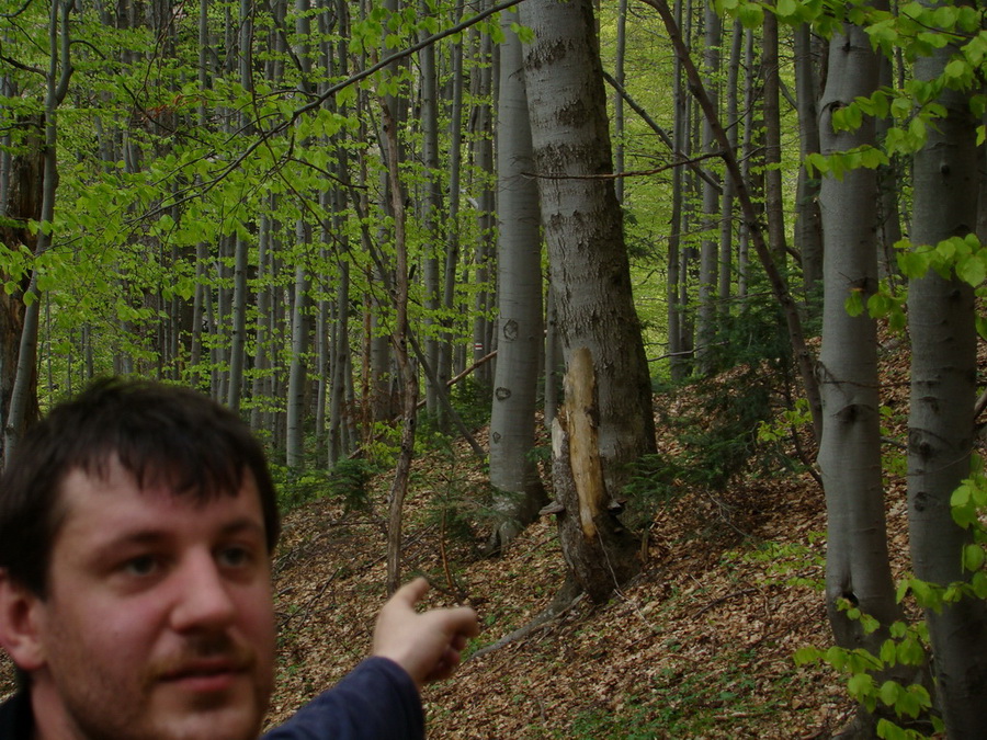 Prostredie je tu skutočne nádherné, majestátne kmene bukov týčiace sa do výšky strieda menší porast a tlejúce, popadané kmene ležiace na zemi. Klesanie pokračovalo ešte dosť dlho, až kým sme neprešli most cez Stužickú rieku. Tu nás čakalo ešte posledné prekvapenie hrebeňovky, dosť prudké stúpanie serpentínami na Temný vŕšok. Z tejto kóty sme už klesali klasickou lesnou zvážnicou a vyšli pri mieste zvanom Skládka. Odtiaľ už sa šlo po asfaltke až do Novej Sedlice. Minuli sme Informačné centrum a hľadali penzión Kremenec, kde sme sa mali stretnúť s logisticko-zabezpečovacím tímom. Záverečné fotografovanie pri hríbiku a o chvíľu už sme sedeli v penzióne. Dlho sme sa nezdržali, ponáhľali sme sa totiž do Sniny, kde nám Karaoke pripravil vynikajúci guľáš z diviny a rybaciu polievku. Zastavili sme sa ešte na vyhliadke na nádrž Starina a onedlho už sme konzumovali lahodné pokrmy zapíjajúc ich fínskou vodkou. Úspešný návrat sme náležite oslávili a tak okrem Štaja, ktorý bol tentokrát šofér, si návrat do Lendaku pamätáme len veľmi hmlisto...