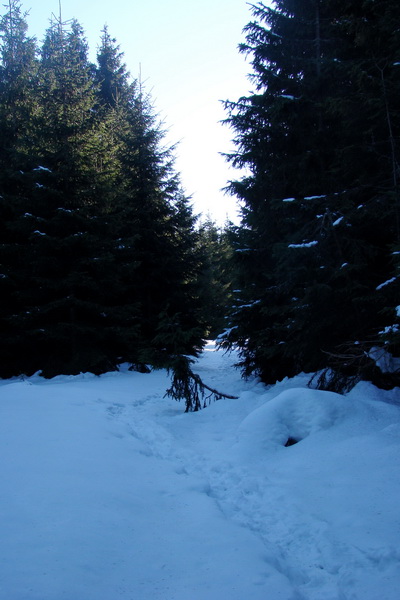 Z rannej Slovenky sme ešte za tmy vystúpili v charakteristicky voňavom Ružomberku. Opäť sme mali možnosť sledovať záhadnú činnosť nosiča vody, ale žiaľ vďaka príchodu autobusu do Vyšného Kubína sme záhadu nerozlúštili. Zastávka v Kubíne je hneď pri hríbiku, vystúpili sme, chvíľu kráčali mimo civilizáciu a pripravili sa na túru. Bolo mrazivé ráno a tak sme sa vybrali blatistou hradskou smerom do lesa. Asi po 15 minútach sme došli na ku stráni, na ktorej sa páslo stádo sŕn. Na strategickom mieste sa nad nimi hrozivo týčil poľovnícky posed. Náš príchod ich vyplašil, dôstojne zmizli v lese. Po chvíli sme došli k prvému hríbiku - Poľana Zásadce. Od tohto momentu začalo výrazné stúpanie zmiešaným lesom s prekážkami v podobe koreňov a vystupujúcich skalísk. Keď sme sa priblížili k 1000 m nadmorskej výške, začali sa objavovať ostrovčeky snehu a ďalší hríbik - Rapáč sa už nachádzal v zasneženom pásme. Na vrchol podľa hríbika to malo trvať okolo 1 1/4 hodiny. Spočiatku sme postupovali idylicky zasneženým smrekovým porastom, z čoho mal radosť najmä Atila, ktorý sa s chuťou vrhal do shehových závejov. Za chrbtom sa nám týčil hrebeň Malej Fatry. Asi po 3/4 hodine sme prišli k záverečnému úseku. Strmejšie pasáže zabezpečovali 2 reťazou istené úseky. Po zdolaní týchto prekážok sme ešte chvíľu obchádzali vrchol a nastalo záverečné stúpanie. Ani sme sa nenazdali a nečakane sa nám zjavil vrcholový hríbik efektne umiestnený pod snehovou pokrývkou pokrytým skalným bralom. Vystúpili sme na bralo a ukázal sa nám kruhový panoramatický výhľad na Malú Fatru, Západné Tatry a slnkom zaliaty hrebeň Nízkych Tatier. Na vrchole fúkal studený vietor a tak sme si našli záveterné miestečko nižšie a naobedovali sa. V menších skupinkách začali prichádzať ďalší turisti, prekvapil nás na túto ročnú dobu pomerne veľký počet . Zostup snehom bol príjemný a ubiehal rýchlo. Vracali sme sa tou istou trasou, kým sme neprišli k drevenému smerovníku na Valaskú Dubovú, kde sme odbočili. Asi po 15 minútach sme došli k útulni zvanej Hotel Choč, ktorá sa nachádza na Poľane. Z Poľany je pekne vidieť vrchol. Ďalej sme pokračovali na sedlo Spuštiak po modrej značke. Cca hodinku sme kráčali ihličnatým lesom, vyšli sme na hradskú ozdobenú početnými vtáčími búdkami v lese a asi po 15 minútach došli k hríbiku sedlo Spuštiak. Rozhodli sme sa, že tentokrát opustíme pôvodný plán vedúci cez Predný Choč na hrad Likavu a zvolili sme kratšiu variantu po modrej priamo do Likavky. Prekvapilo nás spočiatku prudké klesanie, asi po 15 minútach sa však zmiernilo a pokračovali sme blatistým lesným chodníčkom. Minuli sme lesnú chatu a zastavili sa na mieste s výhľadom na Nízke Tatry, kde sme si na chvíľu oddýchli. Po necelých 50 minútach od Spuštiaka sme sa ocitli pri ďalšom hríbiku Pod Smrekovom a pokračovali do Likavky. Vyšli sme z lesa a po pravej strane s výhľadom na zrúcaninu hradu Likava sme kráčali poľom k asfaltovej ceste. Čochvíľa sme došli do dediny, sledujúc modrú značku sme vystúpali na jej koniec a začali zostupovať do Ružomberka. Za 15 minút sme už boli na stanici a vo vynikajúcom čase sme nasadli do preplneného vlaku smerujúceho do Lendaku.