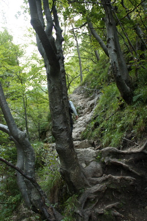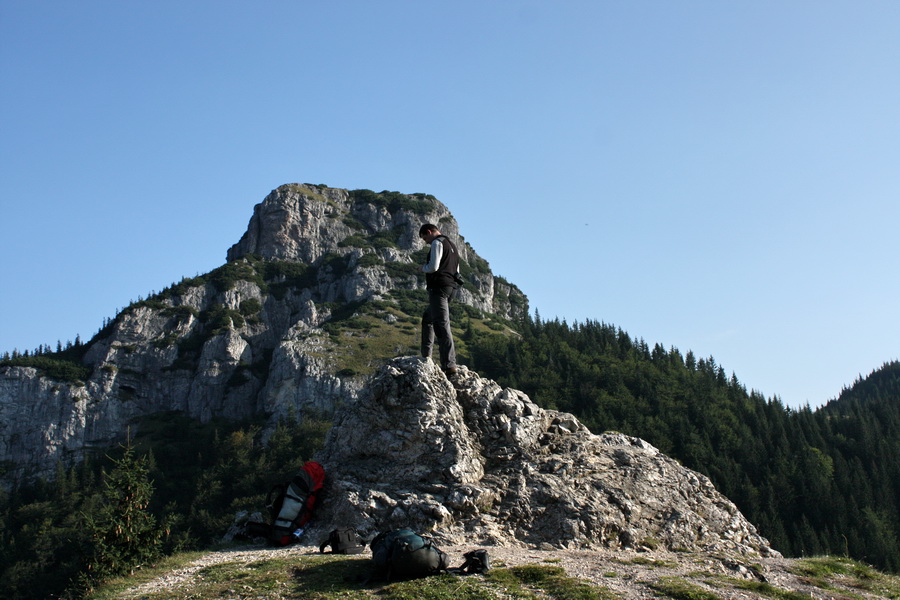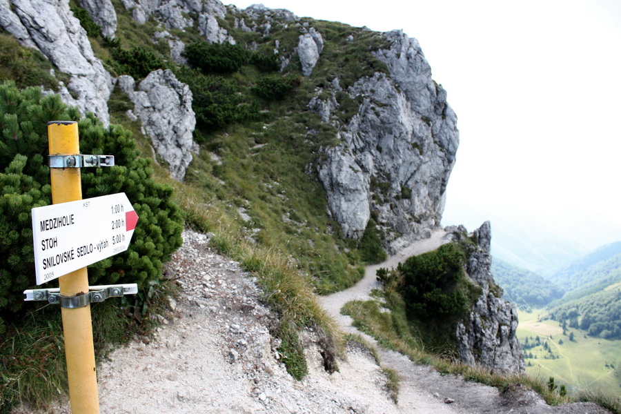 Z Lendaku sme Icéčkom vyrazili do Žiliny o 12.44. Cesta ubiehala pomerne rýchlo, okolo pol štvrtej sme boli na mieste a presunuli sa cez trhovisko pripomínajúce vietnamský bazár na autobusovú stanicu. Tu nás už čakal Štajo, ťahúň z Polonín. Neznalí pomerov, pokúšali sme sa v autobuse dozvedieť viac informácií od Danielky a jej sestry, ktorej tvár sa nám nepodarilo zazrieť. Na základe zistených informácií sme vystúpili o zastávku ďalej, ale po telefonáte sme sa za pár minút presunuli do penziónu Biely potok. Ubytovanie bolo lacné /300,- Sk/noc + 80,- Sk za raňajky, ktoré nám domáca nachystala na 4.30 hod. ráno/. Zložili sme batohy a vybrali sa na večeru do cca 10 min. vzdialeného hotela Diery. Večera bola naozaj opulentná, dopriali sme si výdatne všakovakých dobrôt. Počas konzumácie horca a hrania oka sa večer pretiahol až do záverečnej. Za tmy sme sa vrátili na privát a zaľahli spať. Ráno sme vstali o 5.00, najedli sa a o 6.00 hod. vydali naspäť k hotelu Diery, kde bol počiatočný hríbik dnešnej trasy. Podľa hikeplaneru nás dnes čakalo 18,5 km, 2 022 m prevýšenia, 1177 m klesania a mali sme to zdolať za 8.19 hod.. Vstup do Dolných dier najprv vedie cez lúku, pokračuje niekoľkými kovovými mostíkmi až vyústi do rokliny s potôčikom. Stúpame malebnou scenériou s množstvom vodných kaskád až na Ostrvné. Po ďalších 15 minútach prichádzame na Podžiar, kde sa nachádza bufet /samozrejme v týchto skorých ranných hodinách ešte zatvorený/. Zľava tu vyúsťuje žltá značka vedúca Novými dierami. Po 45 minútach kráčania striedavo lesom, striedavo roklinou prichádzame na hríbik Pod Pálenicou. Náučný chodník je čerstvo zrekonštruovaný, jediná výhrada by snáď mohla smerovať ku kovovým plošinám so zarážkami, ktoré sú aj za suchého počasia pomerne klzké. V Slovenskom raji sú podobné úseky zabezpečené kmeňmi stromov so zárezmi. V ďalšom úseku k hríbiku Pod Tanečnicou sme prekonali posledné istiace prostriedky a ocitli sa na lúčke s vyčnievajúcimi dolomitickými vápencami a výhľadmi na Malý a Veľký Rozsutec. Krása tohto miesta nám učarila a tak sme si tu chvíľu oddýchli a zdržali sa. Po desiatich minútach stúpania sme došli na sedlo Medzirozsutce. Doľava sa ide na Malý Rozsutec, doprava na Veľký Rozsutec. Pre časovú tieseň sme sa teda vybrali doprava. Na dvojkilometrovom úseku sme mali prekonať cca 440 výškových metrov. Smrekový les postupne vystriedala kosodrevina a ukázal sa výhľad na Medziholie. Po niečo vyše hodine sme vyšli na vrcholový chodník, prekonali reťazou zaistený úsek a odfotili sa pri vrcholovom kríži. Bolo asi 10 hodín a zhora bolo vidieť pomerne čulý traffic na Medziholí. Začali sme teda zostupovať. Terén bol dosť exponovaný, pomerne často zaistený reťazami. V poslednej tretine sme vošli do smrekového lesa a po zdolaní 425 m preníženia sme sa ocitli na Medziholí. Bolo tu početné zastúpenie sviatočných turistov zo Štefanovej a tak sme si našli odľahlejšie miestečko na oddych. Pred sebou sme mali ďalšie výrazné /420 m/ stúpanie na Stoh. Opäť sme vošli do lesa, ktorý však vystriedal hôľnatý terén s rozsiahlymi čučoriedkovými porastmi. Pri oddychu počas stúpania sme sa teda občerstvovali čučoriedkami a za niečo vyše hodiny sme sa ocitli na vrchole Stoha. Tu sme si našli záveterné miesto, naobedovali sa a niektorí aj pospali. Mali sme za sebou cca 2/3 trasy, čakalo nás 300 m preníženie na Chrbát Stohu, 230 m stúpanie na Poludňový Grúň a vyše 220 m stúpanie na Sedlo za Hromovým. V rekordnom čase sme zostúpili zo Stohu, trocha nás prekvapil dlhý úsek listnatého lesa v sedle. Pred sebou sme mali pomerne dlhý hrebeň, unavení sme sa utešovali, že už len vystúpame na Poludňový Grúň, Hromové a klesneme na Sedlo za Hromovým a chatu pod Chlebom. Na Poludňovom Grúni sme vytiahli mapu, zorientovali sa a s nádejou vykročili. Predpokladali sme, že nám treba zdolať ešte jeden kopec a sme tam. Samozrejme tých kopcov bolo viac, ale nakoniec sme sa šťastní ocitli na Sedle za Hromovým. Chata bola vzdialená už len 1/2 hodiny a bola dokonca na dohľad. Približne v čase sme tam aj dorazili, privítal nás prívetivý chatár. Ubytovali sme sa, vybrali si trojposchodovú posteľ, zložili veci a pobrali sa osprchovať. Na chate sprchy nie sú, pred chatou je veľká železná nádrž napájaná prameňom a okrem iného slúži aj ako prostriedok osobnej hygieny. Osviežení sme si dali výborný segedínsky guláš, buchty na pare. Noc stála 170,- Sk, jedlo a nápoje boli tiež lacné. K večeru sa začali zbierať ďalší okoloidúci, až sa chata pomerne zaplnila. Opäť sme si zahrali karty a o 10 večer sa pobrali spať. Z jedálne k nám dlho do noci doliehal neustály chichot našich dvoch dredatých poľských spolunocľažníkov /zjavne sa nachádzajúcich pod vplyvom ľahkých psychotropných látok/. Boli ale tak v pohode, že sa na nich absolútne nedalo hnevať.