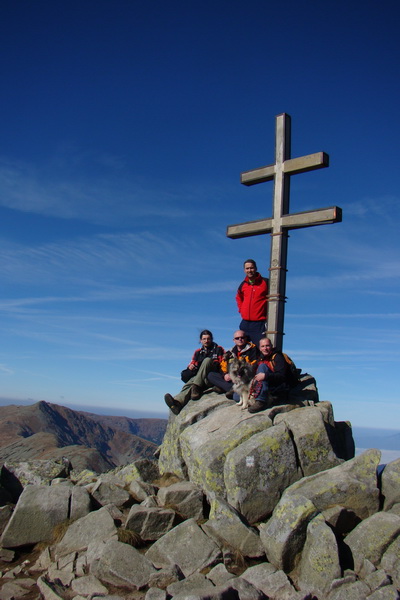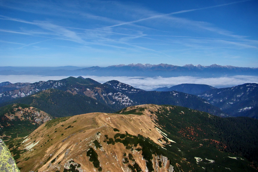 Keď sme skoro ráno vystúpili v Liptovskom Mikuláši z vlaku, privítalo nás mrholenie. HZS predpovedala slnečné počasie a tak nás to prekvapilo. Nasadli sme na autobus do Jasnej. Šofér na Lúčkach zabudol zastať, takže ku hríbiku sme to mali o troška ďalej. Lúčky pokrývala námraza a hmla sa akurát začala dvíhať. Aby sme sa trocha zahriali, vyrazili sme svižným tempom. Lesný chodník bol blatistý a pomaly stúpal. Asi po pol hodinke sme prišli ku hríbiku Pod Krčahovom. K ďalšiemu hríbiku Široká dolina rázcestie to malo ešte trvať cca hodinu. Postupovali sme ďalej lesom, až sme došli na rázcestie. Tu sa nám objavili prvé výhľady na hlavný hrebeň. Občerstvili sme sa a pokračovali ďalej. Stúpali sme vydláždeným chodníkom pomedzi kosodrevinu. Slnko ešte bolo nízko a tak sme spočiatku kráčali v tieni. Na Krúpovo sedlo je prevýšenie cca 600 metrov a tak sme po serpentínach pomaly postupovali. S pribúdajúcimi výškovými metrami sa nám začali objavovať výhľady na Sinú, Chopok, Konské a na inverziou zahalenú Liptovskú kotlinu. Tesne pod sedlom už bolo vidieť aj Západné a Vysoké Tatry. Atila využil zbytky snehu zpred týždňa na osvieženie a dôkladne sa v ňom vyváľal. Asi za hodinu a pol sme prišli ku Krúpovému sedlu, kde sme sa naobedovali. Pekné počasie malo za následok čulý turistický ruch, dokonca Kamienka aj Štefánička boli zarezervované do posledného miesta. Ukázalo sa, že Ďumbier je obľúbenou destináciou štvornohých priateľov človeka a tak Belinda s Atilom stretli prekvapivé množtvo príslušníkov svojho druhu. Zo sedla na Ďumbier to pohodlným chodníkom trvá cca 30 minút. Ďumbier ponúka excelentné výhľady na vrcholy všetkých druhov Tatier. Zostup bol rýchly, čakala nás ešte Prašivá, Tanečnica a Krakova hoľa. Z Krúpoveho sedla sme hôľnatým terénom pokračovali po žltej značke. Keď sme klesli na cca 1700 m, objavila sa kosodrevina a na lúčke neďaleko Prašivej sme si dali oddych. Pokračovali sme výrazným zostupom a vošli do smrekového pásma. Začalo mierne stúpanie po úbočí Tanečnice, ktorej vrchol značka obchádza. Pokračujeme úzkym traverzovým chodníčkom cez lúku, vchádzame znova do lesa a asi po 15 minútach klesania prichádzame do sedla Javorie. K, K a Belinda pokračujú na Lúčky, my ostatní ešte chceme vyjsť na Krakovu hoľu. Znamená to 200 výškových metrov navyše a keďže chceme stihnúť autobus do Mikuláša, stúpame svižným tempom. Čochvíľa sme pri hríbiku Kosienky, na vrchol máme už iba 20 minút. Chodník v kosodrevine nečakane vyúsťuje na holej skalnatej plošine a my sa ocitáme na Krakovej holi. Kvôli intenzívnemu vetru si výhľady vychutnáme narýchlo a vraciame sa do sedla Javorie. Máme trocha voľného času a tak sa vyhrievame na slniečku. Zo sedla na Lúčky to má trvať cca hodinku. Zostupujeme lesom nenáročným, miestami vydláždeným chodníkom. K a K nás telefonicky varovali pred polomom pod Krčahovom, kde sa stráca značka. Treba prejsť priamo cez polom a po ľavej strane sa nachádza mostík cez potok, odkiaľ sa pokračuje na Lúčky. Riadili sme sa podľa tohto návodu a tak sme čoskoro k hríbiku došli. Odtiaľ sme pokračovali cestou známou z rána a po cca 20 minútach sme už boli na zastávke. Nastúpili sme do autobusa a pozorovali správanie nevľúdneho vodiča. Najprv nekompromisne zakázal ruskej rodinke fotografovať dianie v autobuse aj mimo neho, potom na otázku nastupjúceho pasažiera odvrkol, že nevie. Zato na príslušníčky ženského pohlavia akéhokoľvek veku bol vľúdny až až. Vystúpili sme v Mikuláši, do odchodu vlaku sme mali vyše hodiny a tak sme tento čas strávili v priestrannej reštaurácii na poschodí vlakovej stanice, kde okrem nápojov ponúkajú na jedenie aj bagety. Vlak prišiel načas, takže sme do Lendaku došli okolo desiatej.