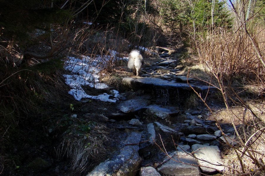 Čaká nás ešte podľa môjho názoru jedna z najkrajších lokalít Nízkych Tatier - Martalúzka. Táto prírodná rezervácia je charakteristická mohutným skalným amfiteátrom, ktorým kaskádovito preteká Hnilec. Žije tu početná populácia vzácnych živočíšnych aj rastlinných druhov. Amfiteáter Martalúzky vyúsťuje do trávnatej polianky. Zostup z Kráľovej hole na Martalúzku je dosť rýchly. Pomáhajú nám snehové polia, cez ktoré je možné bezpečne prebehnúť. Chceme stihnúť spiatočný vlak z Pustého poľa a preto sa pri hríbiku príliš nezdržujeme a začíname so zostupom na polianku. Chodníček vedie skalnatým terénom strmo dolu a pri zostupovaní po klzkých kameňoch musíme byť mimoriadne opatrní. Po náročnom zostupe oddychujeme pri Hnilci a pozorujeme úchvatnú scenériu. Po chvíli sa vnárame do ihličnatého lesa pôsobiaceho pralesovitým dojmom. Občasne popadané stromy na chodníku prekračujeme, alebo obchádzame. Po asi pol hodine zostúpime na lesnú cestu a prichádzame k hríbiku v nadmorskej výške 1 275 m n.m. označenom ako Zadná Nemecká.