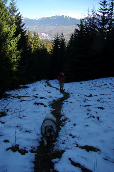 Od začiatku je stúpanie strmé a namáhavé, pomaly zdolávame zalesnený svah. Vo vyšších častiach les redne a výstup je ešte strmší. Objavujú sa bralné steny, miestami aj skalné veže a terasy. Keď sa už blížime na Prednú Poludnicu, otvárajú sa výhľady a bralnatý terén je viditeľnejší. 400 metrové stúpanie na cca kilometrovom úseku dá zabrať, ale asi po hodinke aj štvť od Rakytovice dôjdeme na výhľadovú plošinu Prednej Poludnice. Je nádherné novembrové počasie, vynikajúca viditeľnosť a máme aj časovú rezervu, tak sa kocháme výhľadmi na Liptov, Západné Tatry a časť Vysokých Tatier. Viditeľná je aj Liptovská Mara, Veľký Choč a v pozadí vykukuje malofatranský Stoh a Veľký Rozsutec. Stretávame sa s ďalšími turistami a po srdečnej debate balíme veci, nasadíme batohy a pokračujeme v túre.