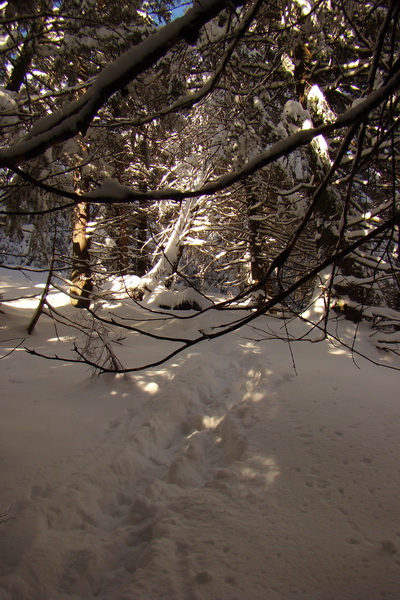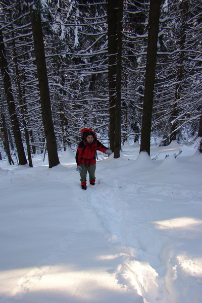 Neúspešný výstup na Kráľovku z piatku nás motivoval k ďalšiemu výstupu. Predpoveď na tento deň bola až na výrazný chlad mimoriadne priaznivá a tak sme nasadli do vlaku a vystúpili v Liptovskom Mikuláši. Do odchodu autobusu do Demänovskej doliny bolo ešte 20 minút, autobus však už bol pristavený a množstvo lyžiarov a snowboardistov situáciu vysvetľovalo. Podarilo sa nám dostať do autobusu a v stanovenom čase aj vyraziť smerom na Jasnú. Celí šťastní sme vystúpili z preplneného autobusa a popri občerstvovacích zariadeniach vyrazili k hríbiku. Od hríbika viedli našim smerom pomerne početné stopy, čo nám postup výrazne uľahčovalo. Trocha nás prekvapil nezmrznutý potôčik, ktorým sme pomerne dlho kráčali. Asi po 20 minútach sme potok opustili a začalo prudké stúpanie. Celkovo sme mali zdolať cca 800 výškových metrov. Výstup vo vyšľapanom snehu prebiehal pomerne pohodlne a tak sme okolo 11:00 oddychovali na prvom výhľadovom bode. Značku sme už dávnejšie opustili ale nachádzali sme sa niekde medzi sedlom Sinej a Sinou. Prekrásne slnečné počasie zvýrazňovalo krásu centrálneho hrebeňa s výhľadom na Dereše a Chopok. Posilnili sme sa čajom a čokoládou a pokračovali ďalej. Po chvíli sa stopy v snehu otočili naspäť a my sme pokračovali neznámym terénom ďalej. Kráčali sme po zalesnenom hrebeni, až sme vyšli na úpätí Sinej. Chceli sme pokračovať známym skalnatým terénom, ale to sa vďaka ľadu a sypkému snehu ukázalo ako nie veľmi dobrý nápad, takže sme skúsili traverzovať bočným svahom. V neprešľapanom teréne sme sa zabárali, Ďuri však neochvejne prešľapával cestu. Obratne sa vyhol lavínovým svahom a asi po 3/4 hodine sme sa ocitli na hrebeni, neďaleko pod vrcholom. Tu už bol sneh vďaka vetru stvrdnutý a nám sa postupovalo oveľa lepšie. Z vrchola je nádherný výhľad predovšetkým na pás Západných a Vysokých Tatier, Malú Fatru, Krakovu hoľu a centrálny hrebeň NT. V závetrí sme sa občerstvili, avšak silný mráz nás už hnal späť. Dole sme šli podstatne rýchlejšie, v hlbokom snehu bol zostup príjemný. Onedlho sme sa ocitli neďaleko vyhliadky a začali zostupovať lesom. O 15.00 sme už stáli na zastávke pri Demänovskej jaskyni slobody. Autobus mal ísť cca za pol hodinku, mal však ešte meškanie, takže sme sa všetci 3 triasli od zimy. V Mikuláši sme sa zohriali teplým čajom v staničnej reštaurácii a za cca hodinku nastúpili do vlaku smerujúceho na Lendak.