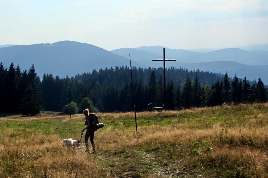 Odbočili sme doľava a po chvíli vystúpili z lesa na lúku v závere ktorej sa týči viacpodlažná horská chata s kapacitou 35 lôžok. K Bacówke PTTK na Krawcowym Wierchu zostupujeme popri "krížovej ceste", ktorej dominuje drevený oltár a vysoký drevený kríž s nápisom Totus Tuus (Celý Tvoj). Po cca 10 minútach skladáme batohy na lavičkách pri chate a vchádzame do jedálne. Na chatu nie je privedená elektrina a ani voda, takže teplota zakúpeného Żywieca má k doporučeným hodnotám ďaleko. Chatár je však veľmi ochotný a na požiadanie okoloidúcim turistom pre účely hygieny naberá vodu do fliaš. Pred chatou sa nachádza rovná plocha vhodná na stanovanie, kvôli početným rojom mravcov sme vhodné miesto párkrát museli zmeniť. Večeriame, vychutnávame si západ slnka a celkovú atmosféru spríjemňuje svit čeloviek turistov sediacich pri pive v chate.