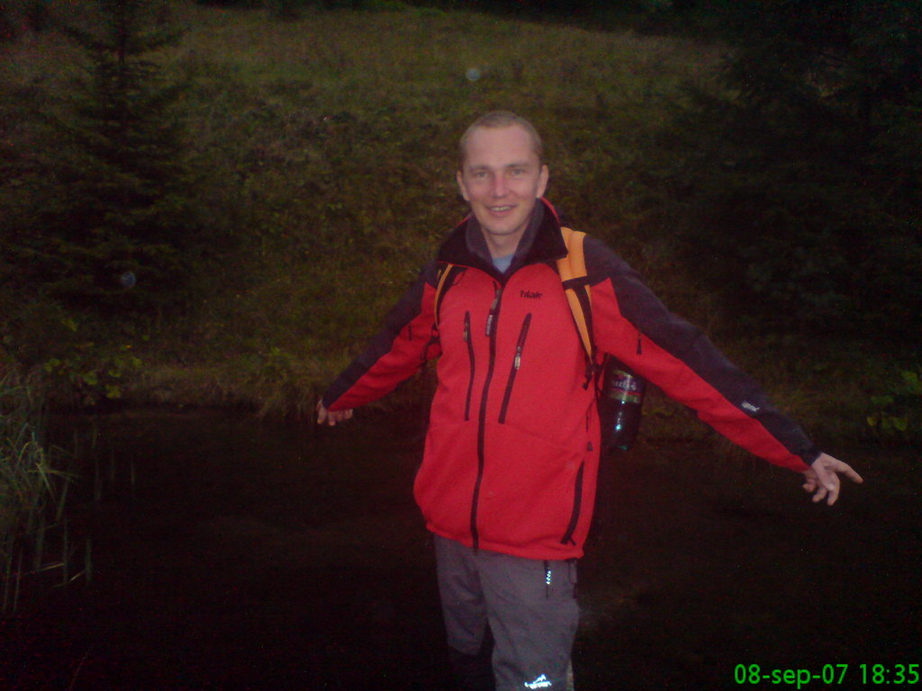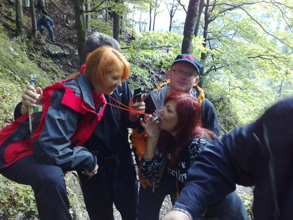 V piatok podvečer sme sa stretli v Maxise v Lendaku. Vyrazili sme autom, do Mlyniek sme došli okolo desiatej večer. Hostiteľka Sis nás pohostila vynikajúcou večerou a začala bujará oslava, ktorá sa pretiahla do skorých ranných hodín. Č utrpel menšie zranenie na ľavej nohe, keď pri tancovaní slaďáku so Sis stúpil do rúčky detského kufríka na hračky. Večer to veľmi ani nevnímal, horšie to bolo ráno, keď tri prsty na nohe boli spuchnuté, sčerneté a dosť bolestivé. Handicap sa odstránil pevnou turistickou topánkou, takže sme na túru mohli vyraziť bez väčších problémov. S takto početnou skupinou bolo dosť problematické zorganizovať odchod, ale po menších prieťahoch sa to predsa len podarilo. Od hríbika na Bielych vodách mala túra trvať cca 1 hodinu. Po predchádzajúcich dažďoch sme spočiatku kráčali rozvodneným potokom. Stúpanie sme si spestrovali fotením. Asi po pol kilometri prišli na rad aj nenáročné rebríky. Po vyše hodinke sme sa na Geravách vynorili z lesa. Sadli sme si vonku, dali osviežujúce pivo. Po čase začalo byť chladno a tak sme sa presunuli do reštaurácie. Č s K sa rozhodli opustiť zvyšok skupiny a cez Veľké a Malé Zajfy, Stratenskú pílu a Dedinky vrátiť sa naspäť. Početnejšia skupina plánovala ísť skratkou, takže za nejakú trištvrtehodinku mali byť späť na chate. Č s K zobrali Belindu a vydali sa na cestu. Spočiatku sme išli lúkou v Geravách, neskôr sme vošli do lesa a začali zostupovať. Po asi 30 minútach sme došli na rázcestie v Malých Zajfoch. Vydali sme sa smerom na Malé a Veľké Zajfy. Cesta bola klesajúca, nenáročná, viedla malebnými zákutiami Malých Zajfov. Z ďalšieho rázcestia sme sa vybrali hradskou na Stratenskú pílu, po ceste sme si oddýchli pri menšom splave, nedaľeko od horárne. Tesne pred pílou sa nachádza jazierko, pri ktorom muškáril rybár. Absolútne s nami odmietal verbálne aj neverbálne komunikovať, tak sme ho nechali a pokračovali ďalej. Od Stratenskej píly sme kráčali popri vodnej sústave, ktorá je prepojená s Palcmanskou Mašou. Hneď pri vode je zopár chát, vládol tam božský kľud. Začalo chvíľkové stúpanie a vošli sme do lesa. Medzitým sa zvečerilo a na rad prišli naše obľúbené čelovky. Bez väčších komplikácií sme sa vynorili z lesa a vošli do Dediniek. Mali sme v pláne sa ešte posilniť nejakým čajom s rumom a nasledovať našich priateľov na Mlynky. Vošli sme teda do reštaurácie, objednali si a započali príjemný relax. O chvíľu zazvonil mobil - naši kolegovia sa vypytovali, že kde sme a či sme v poriadku. Tak sme im oznámili, že sme sa stratili, ale že postupujeme ďalej. Po chvíli sme začuli zvonka známe hlasy a priatelia s hlukom vkráčali k nám. Z ďalšej konzervácie vyplynulo, že K s ostatnými kumpánmi dvakrát zablúdili a dvakrát sa vrátili naspäť na Geravy, až sa nakoniec po značke vydali na Dedinky. Dobre sme sa na tom pobavili, výdatne požívajúc nápoje. Medzitým prišiel po nás Uďo a odviezol nás na chatu. Tam sme sa veselili až do rána ako obvykle.