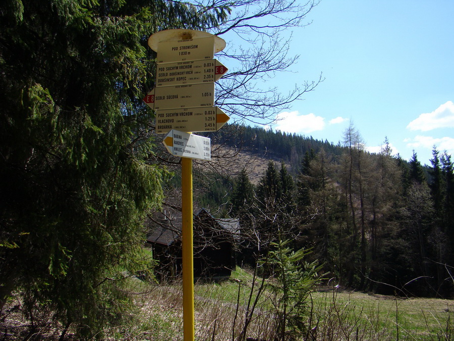 Už letmý pohľad na zhrdzavený hríbik po vystúpení z vlaku v Sykavke signalizoval, že zo značením trasy na Babinú teda ideálne asi nebude. Prešiel som popod most a po chvíli dorazil do lesa. Vďaka usilovnej práci pilčíkov sa značka strácala v spleti popílených stromov a konárov, takže orientácia bola pomerne komplikovaná... Jediným spoľahlivým vodítkom bolo postupovať smerom do kopca. Po asi pol hodine som po vkročení na zvážnicu značku definitívne stratil. Vybral som sa predpokladaným smerom a keď som na značku nenarazil ani po dlhej chvíli, rozdhodol som sa vkročiť do lesa a na Babinú vystúpiť strmým lesným terénom. Les v tejto výške už bol pomerne bez prekážok a ľahko priechodný. Po náročnom asi polhodinovom stúpaní som znova vyšiel na zvážnicu, kde ma prekvapil nečakaný výhľad na panorámu Tatier. Odmenený výhľadom som s optimizmom pokračoval ďalej. Zvážnica ústila na čistinke s množstvom vyťaženého dreva, kde sa na strome opäť na chvíľu objavila značka. Druhú značku určujúcu smer pochodu som už nenašiel a tal som intuitívne pokračoval nahor. Atila sa začal podozrievavo obzerať a keď som začul šuchot signalizujúci,že sa niečo veľké prediera húštinou, pridal som do kroku. Asi po 15 minútach sme vyšli na vrchol Babinej. Spozoroval som líšku, ktorá hľadajúc potravu preskúmavala okolitý terén. Vrchol tvorí čistinka s hríbikom a samozrejme, kopami vyťaženého dreva. Asi 3 minúty naľavo od hríbika je drevená rozhľadňa s vrcholovou knihou a excelentným výhľadom na celé Tatry. Pobral som sa smerom na chatu pod Stromišom, ktorá mala byť vzdialená cca 50 min. Neustále som klesal, prechádzal som rôznymi improvizovanými mostíkmi zhlobenými z brvien a dierami v lesnej klembe sporadicky vykukovala Kráľova hoľa. Klesal som už dosť dlho a obával som sa, že som prešiel ráczestie a pokračujem po žltej do Dobšinej. Po čase sa moje obavy príchodom na rázcestie s E 8 rozptýlili. Na sedlo pod Dobšinským vrchom to ešte malo trvať cca 1.50 hod.. V kľude sme sa na čistinke občerstvili, nabrali vodu v neďalekej studničke a pokračovali po červenej. Trasa viedla širokou lesnou cestou a mierne klesala. Po ľavej strane sa odkrývali pohľady na Kráľovu hoľu a neskôr aj na Dobšinú. Na jednom rúbanisku sme vyplašili obrovského operenca. Znenazdajky značka opustila lesnú cestu a pokračovala do kopca po pravej strane. Krajina zmenila charakter a začala pripomínať nízkotatranský hôľny terén. Pomerne prudké a aj dlhé stúpanie na Ostrú ma prekvapilo a pripravilo ma o dosť síl. Do sedla sme zbehli s časovou rezervou. Do Rakovca to ešte po zelenej malo trvať 20 minút. Asi po 10 minútach sme opäť značku stratili, ale už začali medzi stromami presvitať domy v údolí a tak sme pri najbližšej odbočke zostúpili. Dedinka nie je veľká a pozostáva z niekoľkých domov. Milo ma však prekvapila obecná škola zriadená vo veľkej drevenici. Došiel som na zastávku na znamenie, kde som vyčkal vlak do Margecian. V Margecanoch sme v zhone prestúpili na rýchlik a preplneným vlakom pokračovali do Lendaku.