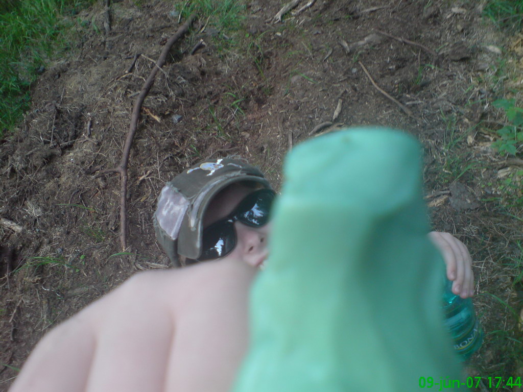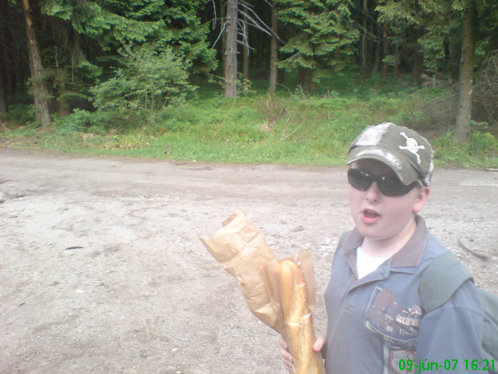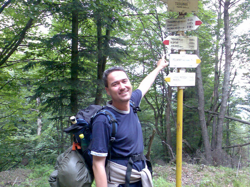 Keď sme naposledy s K boli na Trohánke, v hlavách nám skrsol nápad, aby sme prespali na tejto príjemnej čistinke. Slovo dalo slovo, zobrali sme K, Výhula a psov a vyrazili. Auto sme nechali pri dele, kde postával hlúčik maďarských sviatočných turistov. Psi ako vždy vzbudili všeobecný rozruch a pobavenie, my sme sa zbalili a vyrazili na Trohánku. Úsek je dôverne známy, nenáročný, pochod si krátime rôznymi Výhulovými hádankami a matematickými hlavolamami. V polome opäť poblúdime, ale už z predchádzajúcej skúsenosti vieme, ktorým smerom sa uberať. Nakoniec šťastlivo vchádzame na Trohánku. Dáme sa ihneď do práce, K čistí a pacuje ryby, Č ide pohľadať a doniesť vodu, K sedí a prizerá sa. Rozložíme oheň a začíname opekať. Táborisko je výborne vybavené, drevo je napílené, treba ho len narúbať, rošt na opekanie je pri prístrešku. V samotnom prístrešku sú v suchu zápalky, sviečky, nejaké pochutiny a noviny. Pod stromami sú drevené lavice s veľkým stolom, obďaleč je diera na odpad. Za vzornú správu treba poďakovať správcovi - turistickému klubu Skoba. Ryby začínajú rozvoniavať a my sa do nich s chuťou púšťame. Najedení zapíname čelovky, hráme pomalého faraóna a popíjame. Skrsol nápad vydať sa po tme na Kloptaň ale hlasovanie je nakoniec nerozhodné a rozhodujeme sa ostať. Príjemne unavení si v prístrešku rozkladáme spacáky a ukladáme sa aj so psami na spánok. Jedine Ashley sa k nám nepribližuje, bojí sa pahreby. Ráno nás zobudí Výhul rúbaním dreva, tak ho vyhrešíme a spíme ďalej. Postupne vstávame, raňajkujeme, dávame do poriadku okolie. Okolo obeda sa začína zaťahovať, takže zavelíme na odchod. Ashley si počas balenia odbehla do lesa a opäť ju nevieme nájsť. Po pol hodinke sa vracia, celá zadychčaná. Po červenej sa vraciame k autu. Náhle sa prudko ochladí a začne padať ľadovec. Schováme sa pod stromy a čakáme, kedy to prestane. Naštastie krupobitie netrvalo dlho. Zablateným terénom sa vraciame k autu a vydávame domov do Lendaku.