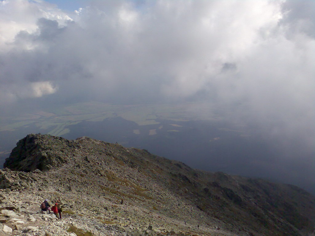 Počas jednej búrlivej noci skrsol nápad vybrať sa znova po dlhšom čase do Tatier. Večer sa prihlásilo množstvo záujemcov, na koniec sme ráno ako vždy nastupovali do vlaku v Lendaku len my dvaja s K. Vo vlaku sme ešte dohodli stretko s Martinou v Štrbe. Po pol hodine čakania došla a odviezla nás na Štrbské pleso. Na parkovisku pri plese mala náborový stánok armáda SR /na druhý deň sme sa dozvedeli, že organizovali hromadný výstup na Kriváň/. Ako skúsení turisti sme sa išli poistiť do Patrie. Keďže sme my dvaja na Kriváni boli už pred rokom, skúšali sme Martinu zlomiť na Kôprovský štít. Keď sa jej do očí začali tisnúť prvé slzy sklamania, nechali sme to tak, objednali kávu, koláčik a aperitív a konečne sa vybrali na túru. Počasie bolo hmlisté, ale nepršalo. Keď sme opúšťali chodník pri plese, Č si spomenul, že klobúk nechal v reštaurácii. Ihneď sme do pátracej akcie cez mobily zapojili recepčného aj čašníčku, ale klobúk už bol fuč. Sklamaný Č sa pre istotu ešte raz pozrel do batoha a samozrejme, klobúk bol v ňom. Po tejto úvodnej historke sme sa vydali známou, nezáživnou cestou ku Jamskému plesu. Pri plese sme si trocha povegetili. Belinda vyprovokovala incident so starším manželským párom, keď sa s nimi celá šťastná išla zvítať. Chlapík začal vykrikovať, nech si toho psa berieme preč... Trochu sme sa prekárali, ale nechali sme to tak a pobrali sa ďalej našim smerom. Po asi polhodinovom stúpaní sme vyšli z lesa a vošli do pásma kosodreviny. Obloha bola zatiahnutá, viditeľnosť mizivá. Po kilometri stúpania sme sa zastavili na rovnejšom úseku na oddych. Niečo sme pojedli, Belinda zatiaľ zahnala na ústup krvilačného retrievera. Po krátkej prestávke sme vystúpali na traverz smerujúci ku Krivánskemu žľabu. Oproti nám prúdili masy ľudí, čo už mali výstup za sebou. V žľabe bolo ako aj pred rokom chladno, aj počasie sa zhoršovalo. Nasledoval posledný úsek, samotný výstup na vrchol - podľa hríbika 45 minút. K s Belindou nás opustili /predsa len pre takého malého psíka je to trocha nebezpečné/. Terén má miestami dvojkovú obťiažnosť, s Martinou obdivujeme dôchodcov urputne zdolávajúcich prekážky. Nakoniec vystúpame až ku charakteristickému dvojkrížu a nechávame sa fotiť. Prichádza aj zmiešaná dvojica s bratislavským prízvukom s čímsi huňatým v náručí. Nedalo nám to a vyzvedali sme, že čo je to za tvora. Dozvedeli sme sa, že činčila /tuším sa volala Mišo/. Naobedovali sme sa a vydali na cestu nadol. Asi v polovici Kriváňa sa okolité mraky a hmla roztiahli, vyšlo slniečko a nám sa odkryli nádherné výhľady /obdobne ako pred rokom/. Cesta na Štrbské pleso ubiehala rýchlo pri družnom rozhovore. K s Belindou nás čakali pri Furkotke, kde sme nakoniec dorazili aj my. Najedli sme sa, nasadli do auta a vydali sa naspäť do Lendaku.
