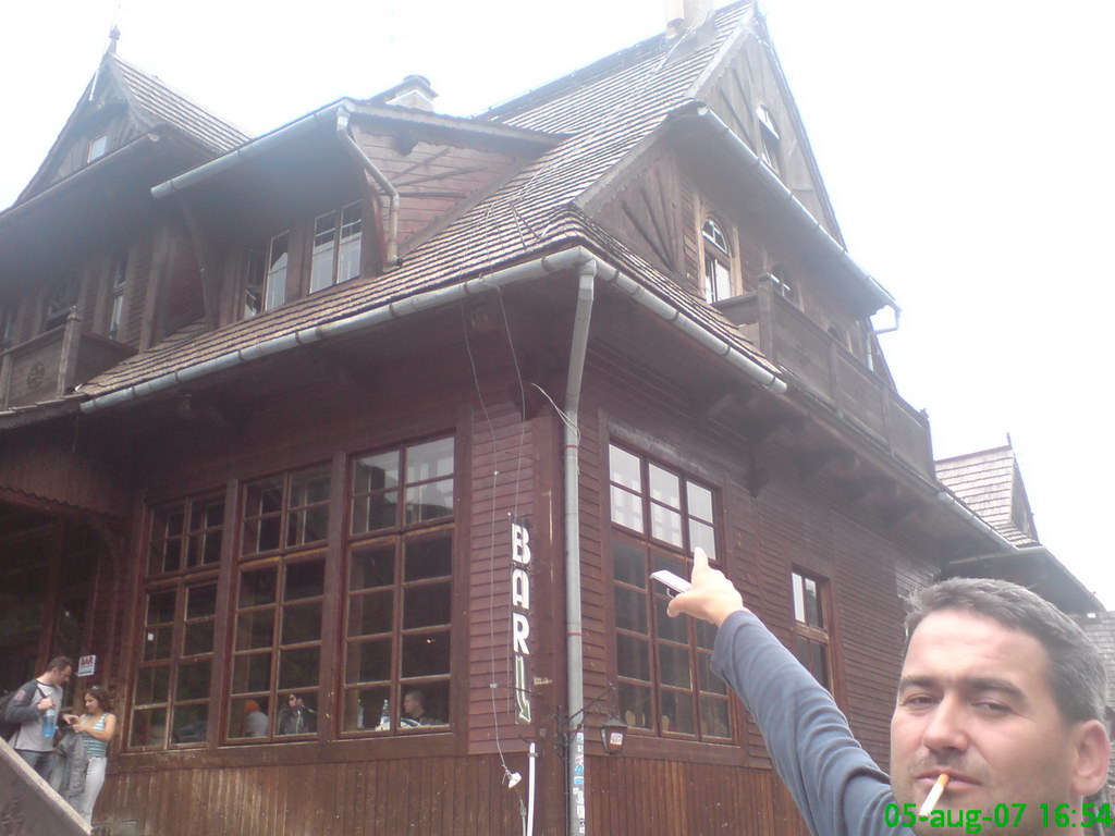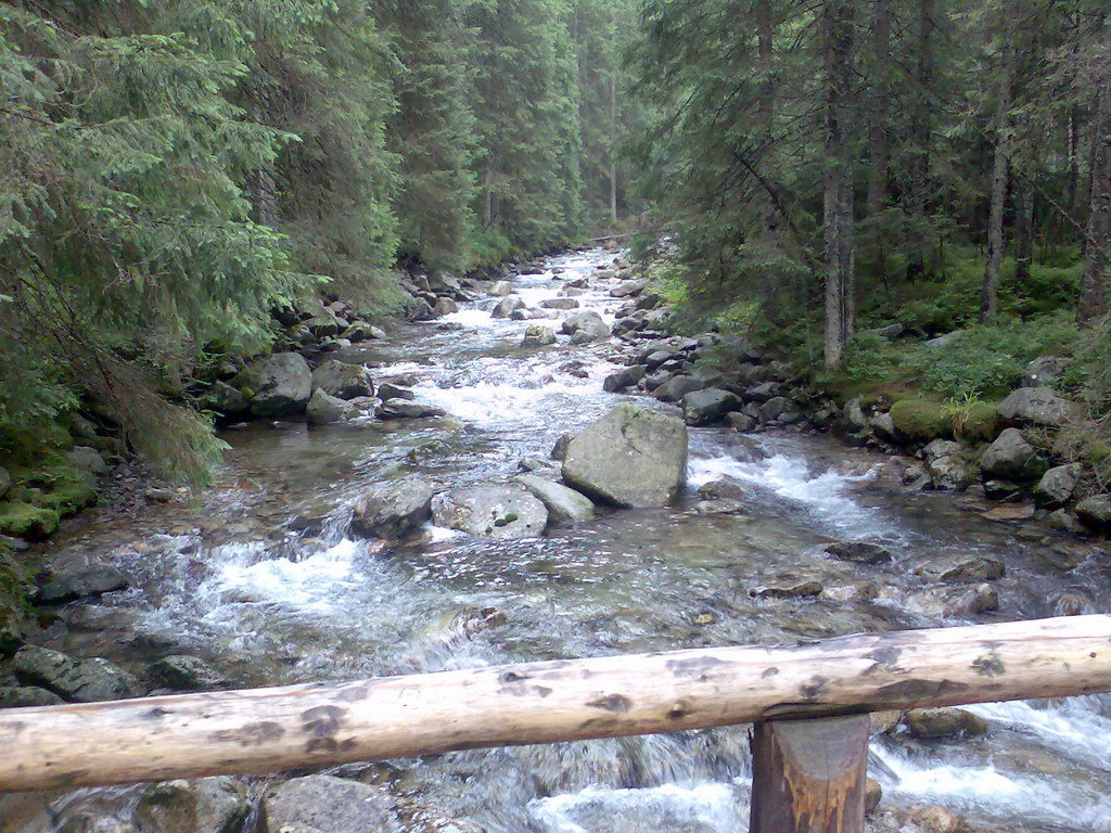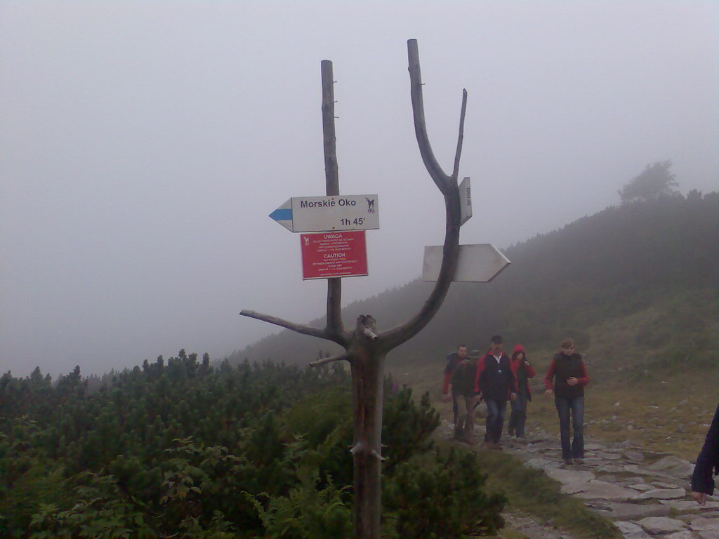 K a K ako aktívni účastníci Mojsejfestu sa ešte nachádzali v Pieninách a ja som sa vybral na Chatu pri piatich plesách sám. Nasadol som teda v Lendaku na vlak, vystúpil v Poprade, hodinku počkal a nasadol na autobus na Lysú Poľanu. Vystúpil som na konečnej, v miestnych potravinách kúpil lieskové orechy na cestu a zamenil zlote /odporúčam meniť zlote na Slovensku, podnikavá rzecz pospolita polska na druhej strane hranice ponúkala výmenu za oveľa nevýhodnejších podmienok/. Preukázajúc sa platným OP som prekročil hranicu a vybral sa doľava. Doprava vedie cesta na Zakopane. Prešiel som okolo tržnice so suvenírmi, ovčími kožušinami a korbáčikmi, zakúpil si vstupenku do parku a vydal sa na túru. Také davy ľudí som naposledy videl na Lendackych vianočných trhoch. Húfy ľudí mierili mojim smerom, čo ma trocha zneisťovalo. Pre istotu som vybral mapu a nazrel, či idem správnym smerom /očakával som totiž, že ku piatim plesám pôjde málokto/. Mapa ma uistila, že idem správne a tak som na asfaltke zrýchlil tempo a začal obiehať skupinky poliakov. Po hradskej kráčali aj konské povozy vezúce lenivejších rekreantov. Nezáživné stúpanie pokračovalo až po Mickiewiczove vodopády, kde sa húfy rozdelili na dva prúdy. Hlavný prúd vrátane povozov smeroval na Morské oko, menší na Chatu pri piatich plesách. Vošiel som teda do lesa a začalo intenzívnejšie stúpanie. Po chvíli terén nabral miernejší ale stále stúpajúci charakter. Po najbližší hríbik mala cesta trvať hodinu a pol. Postupne som vyšiel z lesa a pokračoval Dolinou Roztoki, pričom okolité skaly boli zahalené v hmle. Prišiel som ku hríbiku a začalo prudké traverzové stúpanie po čiernej. Dalo mi to riadne zabrať ale nakoniec som sa ocitol na cestičke vedúcej ku chate. V okolí chaty bolo množstvo ľudí, tak som vošiel dnu. Našiel som recepciu a zarezervoval som spanie pre mňa aj K a K. Keď som sa o to isté pokúšal pred pár dňami majlom, vždy mi došla záporná odpoveď, že voľné kapacity nemajú. Vyšiel som pred chatu a začal hľadať signál aby som sa spojil s K a K. Signál možno zachytiť na chodníku za chatou smerom do Doliny Roztoki, troška ďalej od chodníka, po výstupe na balvan. Dozvedel som sa, že moji priatelia ešte nevyrazili, že ich môžem očakávať najskôr o 4 hodiny. Vrátil som sa teda na izbu a zaľahol. Po pár hodinách som vstal a rozhodol sa, že pôjdem parťákom naproti /po telefóne som ich navigoval, aby sa vyviezli povozom na Morské oko a odtiaľ to k cieľu mali za nejaké 2 hodinky/. Prešiel som okolo Predného poľského plesa a začal stúpať. Asi po tri štvrte hodinke som bol na Swistowej Czube a opäť som chytil signál. Volám a dozvedám sa nemilú novinku. K a K akurát dorazili ku Morskému oku. Vraciam sa teda späť na chatu a dávam si večeru. Vychutnávam si čaj po večeri, keď zrazu kobieta prestiera môj stôl bielym obrusom. Poďakujem sa teda, kobieta však zúrivo gestikuluje a odháňa ma preč. Presadám si teda ku stene a s napätím sledujem, čo sa bude diať. Prinášajú kríž a postavia ho ku stolu, kde som predtým sedel. O chvíľu začala omša. Vychádzam teda z chaty a kochám sa okolím. Po pol hodinke prichádzajú K a K, zvítame sa a ja ich oboznamujem so situáciou. Neveriacky vojdú dnu a znepokojení sledujú dianie. Najhoršie na tom je, že počas tejto udalosti je zavretý výčap. Omša čochvíľa končí, kolegovia sa ubytujú a povečerajú. Oproti slovenským chatám je menu oveľa striedmejšie a alkoholu majú iba dva druhy - rum a likér. K a K sa s týmto žalostným stavom nejak vyrovnali a objednávame si rum. Spať ideme ako vždy medzi poslednými, darí sa nám nadväzovať kontakty s poľským slabším pohlavím, žiaľ na mená už si nespomíname. Na izbe s nami spí aj staršia veriaca kobieta, ktorá to zrejme berie ako skúšku. Nastavujeme si budík na pol piatu a ukladáme sa na spánok.