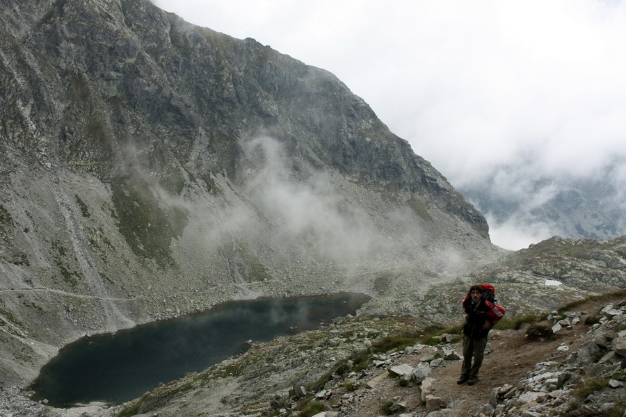 O 5.30 už sme IC-čkom z Lendaku vyrazili do Popradu. Po prestupe na električku sme o pol ôsmej vystúpili v Starom Smokovci a vyrazili na Sliezsky dom. Trasa najprv vedie pomedzi penzióny a asi po 10 minútach odbočí smerom ku štítom. Po chvíľke pochodu cez pomaly sa obnovujúci porast po pamätnej víchrici sa vnárame do lesa. Z diaľky počuť ľudské hlasy a keď sa dostatočne priblížime, môžme pozorovať drevorubačov pri práci. Neďaleko počuť praskanie rúbaného stromu a preto nebezpečný úsek radšej prebehujeme. Až po Rázcestie nad zrubami stúpame ihličnatým lesom. Od rázcestia k Sliezkemu domu je to už len cca hodinka. Po ľavej strane sa nám pomedzi smreky ukazuje masív Gerlachu. Vojdeme do pásma kosodreviny a v diaľke už vidíme Sliezsky dom. Od hríbika je to už len 15 minút a 100 metrové prevýšenie. Úsek zdolávame v rekordnom čase a zamierime si to do Klubu horských vodcov, kde sa posilníme čajom Mistral podľa vlastného výberu a extrémne hustou hrachovou polievkou. Posilnení sme sa pustili do vyše 600 metrového prevýšenia na Poľský hrebeň. Obišli sme Velické pleso a popri Velickom vodopáde vystúpali na Kvetnicu. Minuli sme osamelo sa pasúceho kamzíka a po značke zabočili smerom k Dlhému plesu. Ďuri tu dosiahol svoj osobný výškový rekord /2000 m/, ktorý tohto dňa ešte nespočetne krát prekonal. Smerom od Sliezskeho domu sa začala dvíhať hmla a o chvíľu úplne zakryla končiare aj samotnú Východnú Vysokú. Následne na to Sony Cybershot vypovedal službu. Pred dvanástou sme vyšli na Poľský hrebeň, trocha si oddýchli a v pomerne rušnej premávke vyrazili na Východnú Vysokú. V čase podľa hríbika sme dorazili na vrchol. Hmla sa na chvíľu roztrhala a okrem okolitých štítov bolo možné pozorovať aj Zbojnícku chatu a Sliezsky dom. Trocha sa rozfúkalo a tak sme sa vrátili na Poľský hrebeň. Rozhodli sme sa, ze pre návrat si vyberieme obtiažnejšiu alternatívu cez sedlo Prielom. Zostúpili sme teda a popri Zamrznutom plese začali prekonávať cca 250 metrové prevýšenie. Po asi 45 minútach a prekonaní úsekov zaistených reťazami sme vyšli so sedla, ktoré okupovala skupina nadpriemerne hlučných a hyperaktívnych poliakov vo vyššom strednom veku. Vychutnali sme si teda hurhaj a začali zostupovať ku Zbojníckej chate. Chceli sme sa vyhnúť hlučnému zoskupeniu za nami, avšak upadli sme do pasce, keď sme dobehli predvoj, ktorý nebadane vyslali ešte pred našim zostupom. Používali rafinované techniky zdržiavania pri zostupe, napr. v kritických úsekoch, kde ledva mohol prejsť jeden človek, z posledných síl, totálne dehydrovaní, vytiahli vodu aby sa mohli napiť, alebo sa na exponovaných úsekoch začali v rôznych kombináciách, permutáciách a variáciách fotiť. Zázračným spôsobom sa nám podarilo predbehnúť ich a pokračovali sme v ceste na Zbojníčku. Asi 20 minút pred chatou sa spustil dážď, tak sme pridali do kroku, aby sme si zaistili miesto na chate. Na chate bolo samozrejme preplnené, ale nakoniec sme sa usadili v rohu. Dali sme si čaj a guľáš. Okrem nevšímavého prístupu personálu nás zarazila aj nezvyklá cenová politika. Dvojciferné ceny nápojov vždy končia číslom 5. Takže pri kombinácii jedla a nápoja sa platí opäť suma končiaca 5. Personál sa opýta, či máte 5 korún a väčšine zákazníkov sa drobné nechce hľadať, takže klient cenu obvykle zaokrúhli o 5 nahor. V hlučnej a vydýchanej miestnosti sme zotrvali nevyhnutnú dobu a keď sa dážď zmiernil, začali sme Veľkou studenou dolinou zostupovať na Starolesniansku poľanu. Asi po hodine a pol sme opustili pásmo kosodreviny a vkročili do lesa. Po dvadsiatich minútach sme prišli k hríbiku, od ktorého to po červenej na Hrebienok trvalo cca 15 minút. Kúpili sme si lístok na zubačku a v bufete čakali, kým neotvoria nástupište. V Starom Smokovci sme vystúpili a do nástupu na električku do Popradu sme mali asi 3 minúty. Naštastie nás sprievodca počkal a električku sme stihli. Ešte nastala komplikácia s nákupom lístka za mince z automatu v električke, ktorá vyvrcholila spoluprácou viacerých cestujúcich pri povinnom označení čerstvo vytlačeného lístka v označovači pomerne vzdialenom od automatu. Keď sme dorazili do Popradu, vďaka skvele zosynchronizovanému grafikonu ŽSR sme na zakúpenie lístkov a prestup mali k dispozícii necelé 3 minúty. Neuveriteľným šťastím sa nám podarilo stihnúť aj túto záverečnú etapu spiatočnej cesty a tak sme síce s meškaním, ale predsa, po 21.00 vystúpili v Lendaku