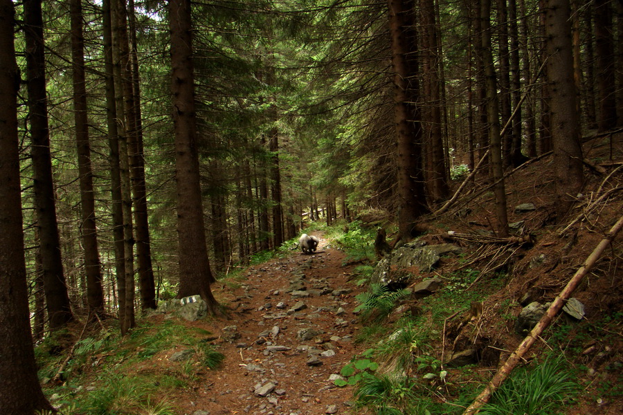 Táto časť etapy je identická s tou, ktorá bola popísaná v túre na Plačlivô. Hneď ako som minul Medvediu štôlňu, pošťastilo sa mi stopnúť PRAGU V3S. Vyložil som Atiho na korbu a vyštveral sa za ním. Cesta rýchlo ubiehala, míňali sme iných peších turistov, ktorí sa s počudovaním pozerali na dychčiaceho chlpáča na korbe. Cca kilometer pred Žiarskou chatou šofér "vétriesku" na príhodnom mieste otočil, vysadil ma a vrátil sa k ťažbe dreva. O chvíľu nás predbehol traktor s ťažným koňom na vlečke. Ďalšia cesta rýchlo ubehla a okolo siedmej sme boli pred Žiarskou chatou.